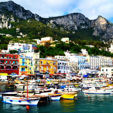Capri is an island located in the Tyrrhenian Sea off the Sorrentine Peninsula, on the south side of the Gulf of Naples in the Campania region of Italy. The main town Capri that is located on the island shares the name.